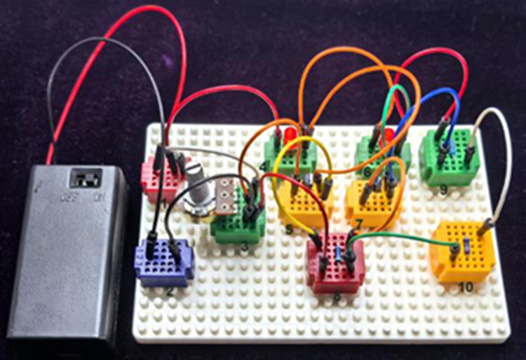 Met de analoge breadboard kit leren studenten de basisbeginselen van hoe je circuits bouwt, hoe basiscomponenten van de elektronica werken, hoe je elektrische schema's leest en hoe je eenvoudige elektronische schakelingen bouwt en problemen oplost.