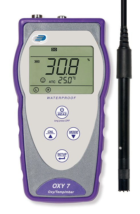 Levering inclusiefpolarografische zuurstofsonde OXY DO7 met geïntegreerde temperatuursensor, elektrolytoplossing (30 ml), kalibratieoplossing Standard Zero (30 ml), wisselmembraan, bewaarkoffer en batterijen.