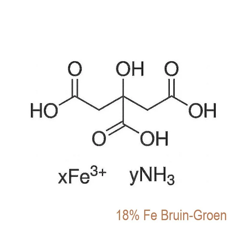 Ammoniumijzer(III) citraat 18% Fe. Bruin-groen
