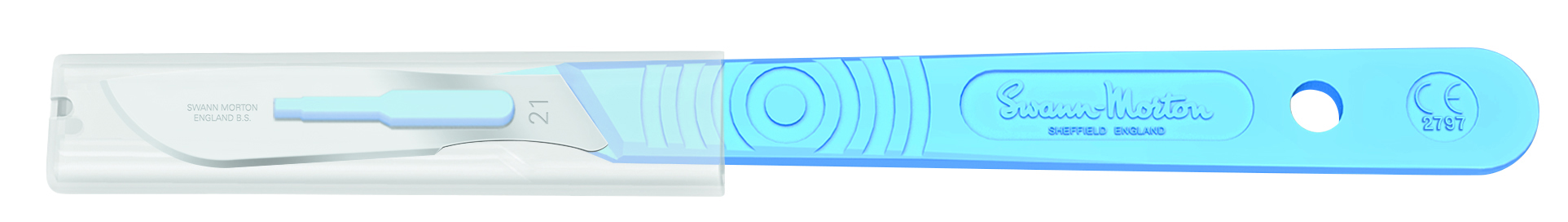 Swann Morton Sterile disposable scalpels with guard Nummer:21,Past op heft: