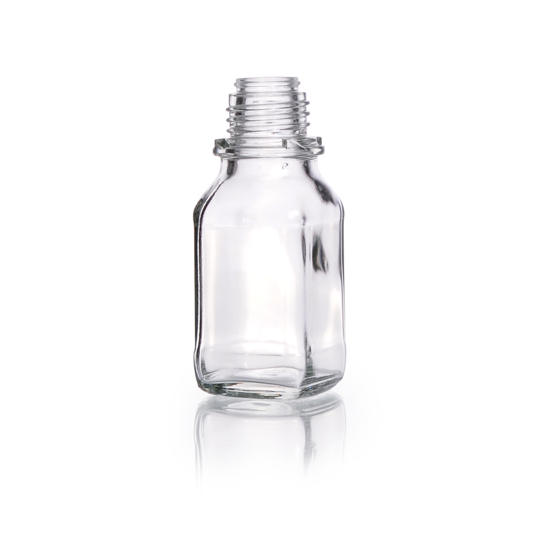 Vierkant-Schraubflasche, enghals, klar,
