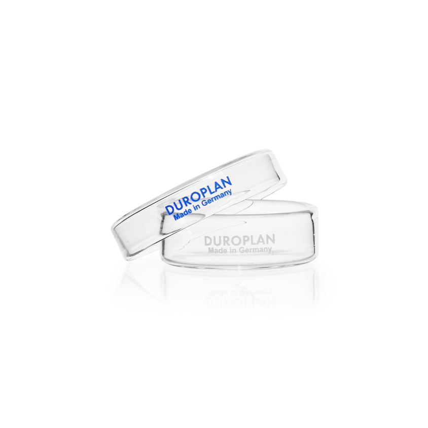 Wanneer standaard glaswerk niet volstaat, bieden DUROPLAN petrischalen de ultieme oplossing. Deze schalen worden via een speciaal productieproces vervaardigd uit DURAN borosilicaatglas 3.3. Het resultaat is een petrischaal die microscopisch vlak is, waardoor ze superieur zijn voor zowel microscopie als een perfect gelijkmatige verdeling van uw voedingsbodem.