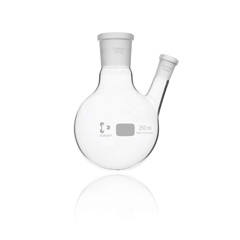 DURAN® dubbelhalsrondbodemkolf, schuine zijhals NS 14/23, middenhals NS 29/32, 250 ml