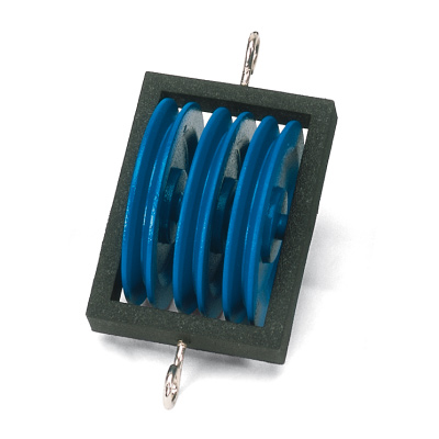For experiments with fixed and movable pulleys. Non-deformable, low-friction pulleys with cord grooves and hooks at the ends of both axles for suspending from fixed supports or other pulleys. The enclosed design of the plastic frame prevents the cord from slipping off the pulley.