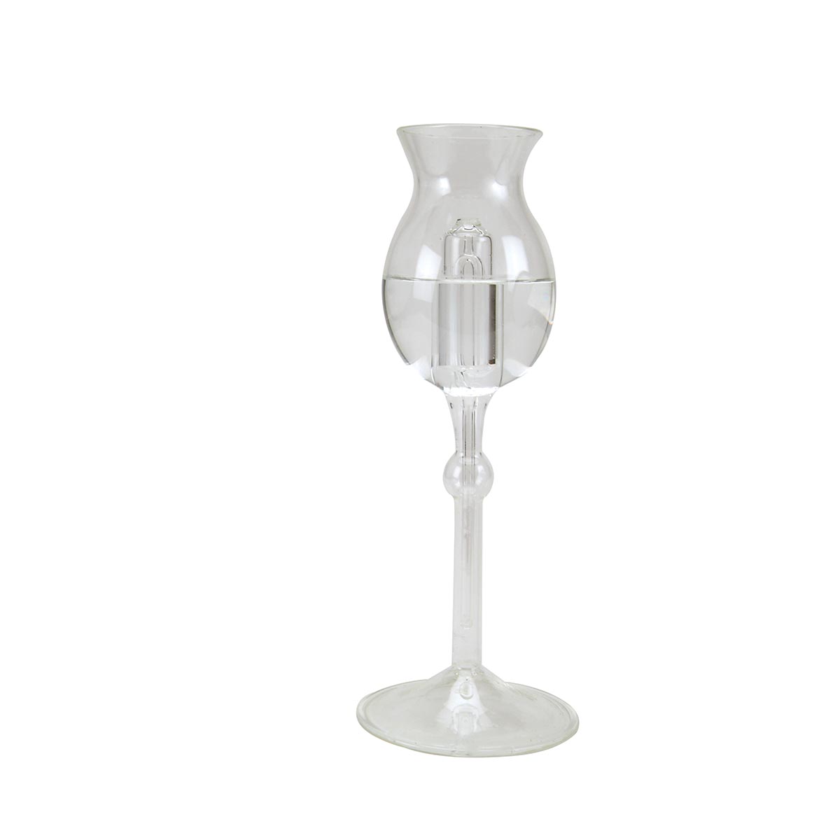 Our Pythagorean cup is manufactured of clear glass and hand blown. The secret of the construction is the siphon, which is built into the center of the cup. This fun and functional product is an ideal way to explain the principles of a siphon to your students while including an historical background. Height: 250 mm Cup: 80 mm Ø