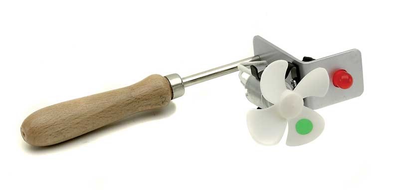 Door op de bladen te blazen, gaat een LED branden om aan te geven dat windenergie is omgezet in elektrische energie.