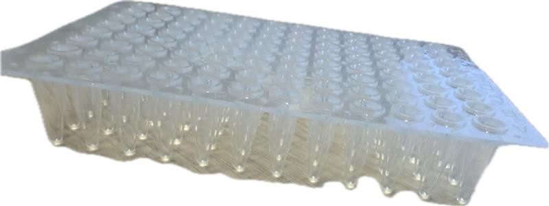 Deze 96 well PCR platen, gemaakt van polypropyleen en zijn een overblijfsel in ons magazijn uit de coronaperiode.