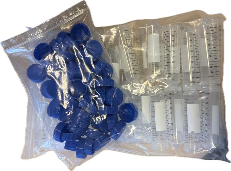 Deze veel gebruikte Falcon tubes ,gemaakt van polypropyleen met HDPE schroefdeksel (blauw) en zijn een overblijfsel in ons magazijn uit de coronaperiode.